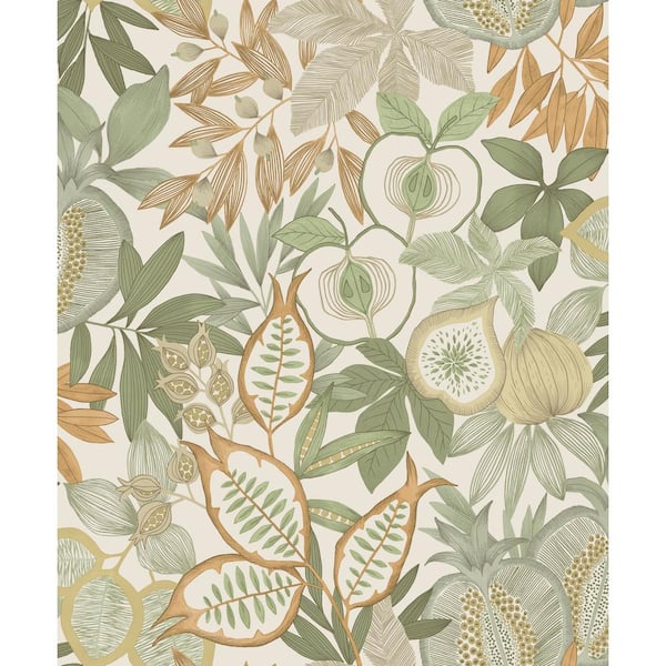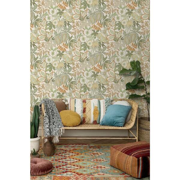Green/Orange Vibrant Botanical Foliage Print Non Woven Non-Pasted Textured Wallpaper 57 sq. ft.