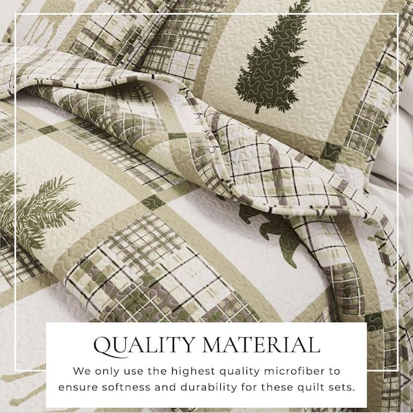 Green/Taupe Twin Lodge Patchwork 2-Piece Microfiber Quilt Set Bedspread