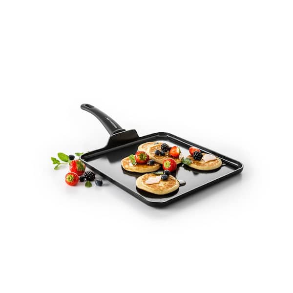 Soft Grip 11 in. Aluminum, PFAS Free Ceramic Non-Stick Square Griddle in Black