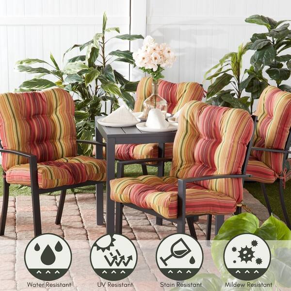 19 in. x 19 in. 1-Piece Mid-Back Outdoor Dining Chair Cushion 2-Pack in Kinnabari Stripe