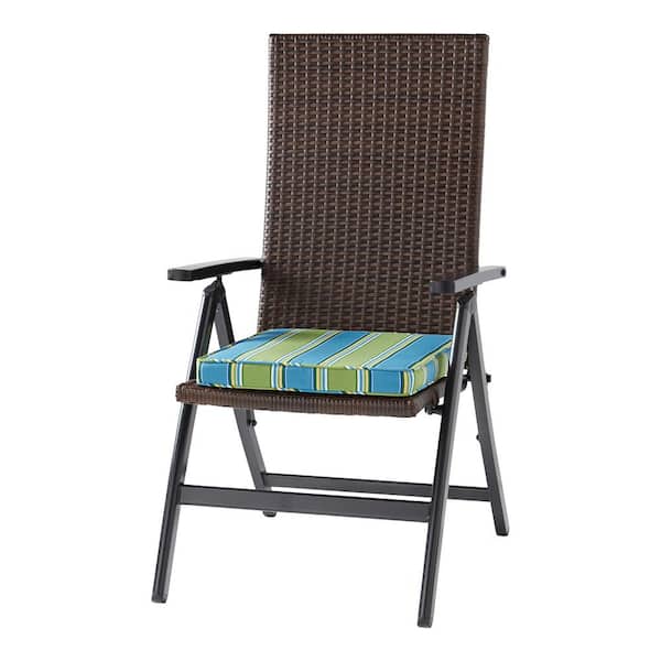 Wicker Outdoor PE Foldable Reclining Chair with Cayman Stripe Seat Cushion