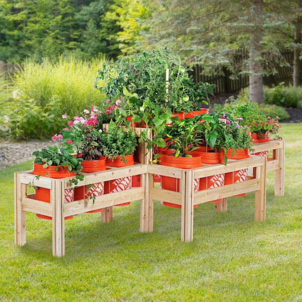 125 in. x 43 in. x 30 in. 2-Tiers 15 Bucket Elevated Unfinished Wood Cedar Garden Frame Raised Beds