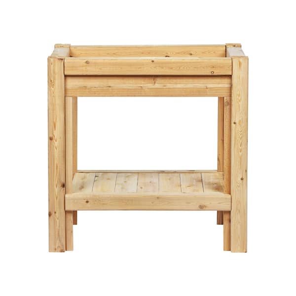 2 Tiers Cedar Bucket with Shelf Garage Storage Shelving Unit in Unfinished Cedar Wood (31 in. W x 30 in. H x 16 in. D)
