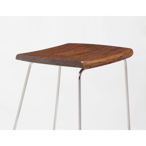 Paris 26 in. Exotic 100% Solid Bamboo and Polished Stainless Steel Counter Stool without Back (Set of 2)