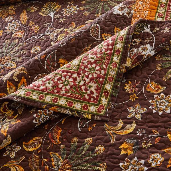 Audrey Floral Chocolate 3-Piece Cotton Blend King/Cal King Jumbo Quilt Set