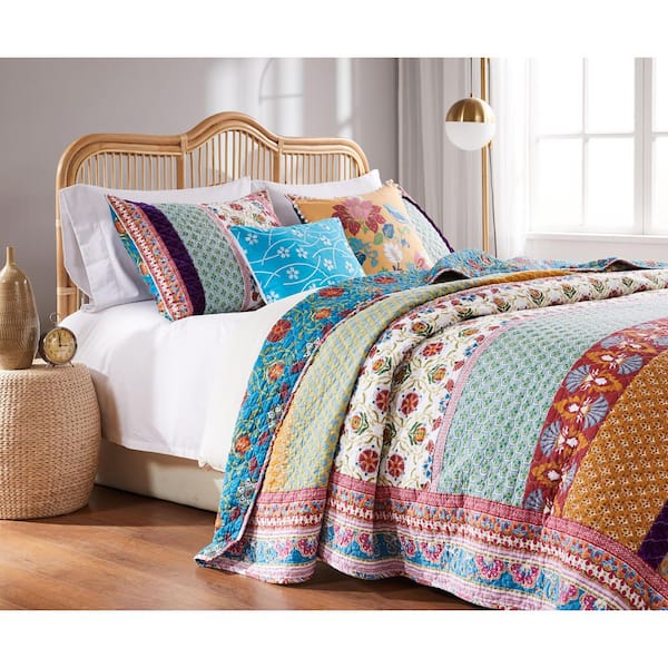 Thalia Contemporary Floral 3-Piece Multi Cotton Queen Bedspread Quilt Set