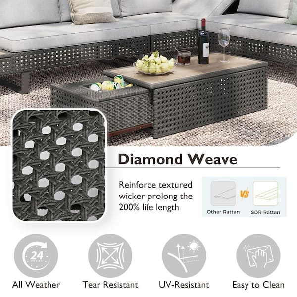 Grey 4-Piece Rattan Wicker Outdoor Patio Sectional Furniture Sofa Set with Grey Cushions and Extendable Coffee Table
