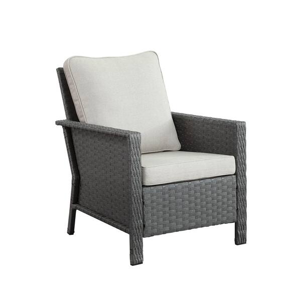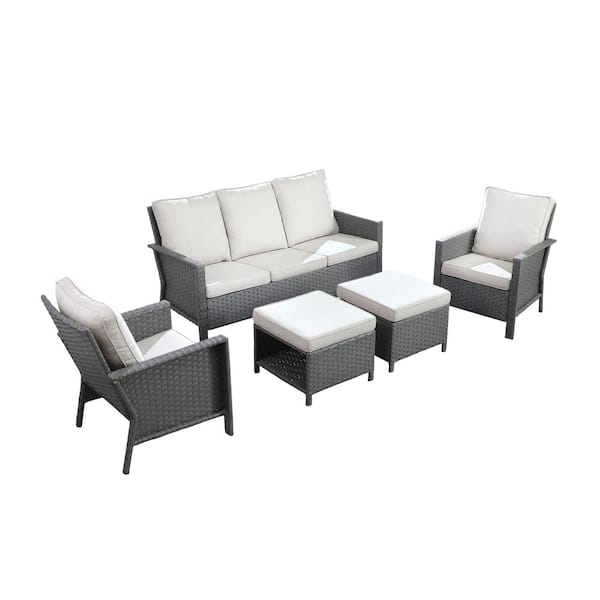 Grey 5-Piece Wicker Outdoor Sectional Set with Beige Cushions
