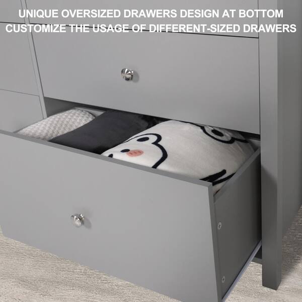 Grey 6-Drawer Chest of Drawers Long Storage Dresser with 2-Oversized Drawers (56 in. W x 32.4 in. H)