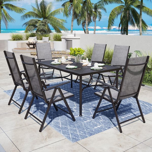 Grey 7-Pieces Metal Outdoor Patio Dining Set with Folding Sling Dining Chairs