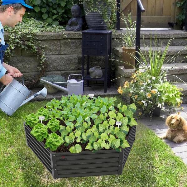 Grey 70 in. x 60 in. x 18 in. Hexagon Anti-Rust Galvanized Metal Raised Garden Bed