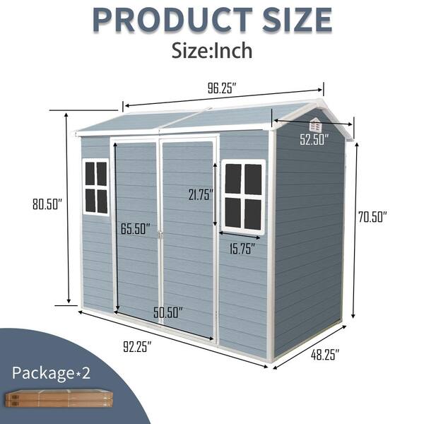 Grey 8 ft. W x 4 ft. D Resin Outdoor Storage Shed with 2-Windows, Double-Door, Floor for Patio Yard Lawn (32 sq. ft.)