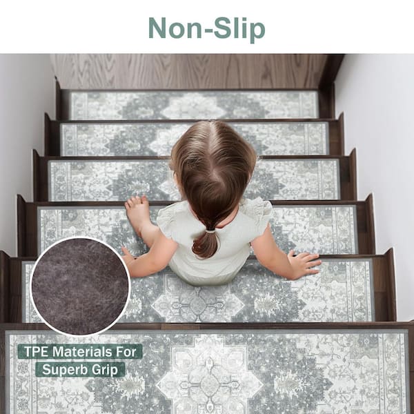 Grey 8 in. x 30 in. Polyester Stair Tread Cover (Set of 15)