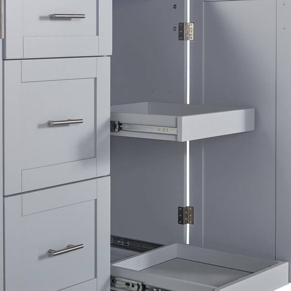 Grey Blue Rubber Wood Kitchen Cart with 5 Drawer, Spice Rack and Internal Storage Rack