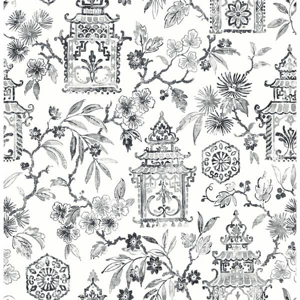 Grey Helaine Pagoda Wallpaper Sample