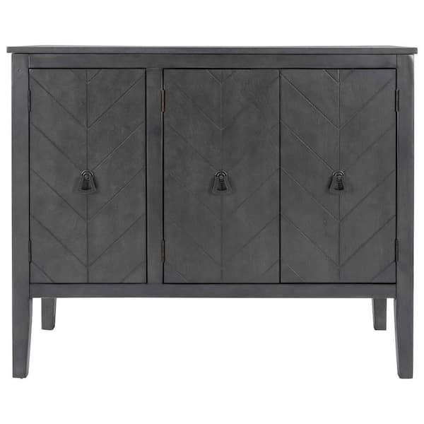 Grey MDF 37 in. Retro Storage Sideboard 3-Metal Handles Door Buffet Cabinet with Adjustable Shelves
