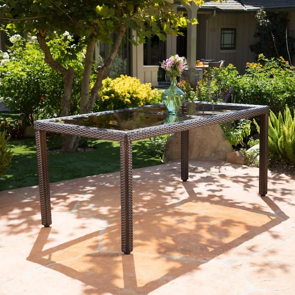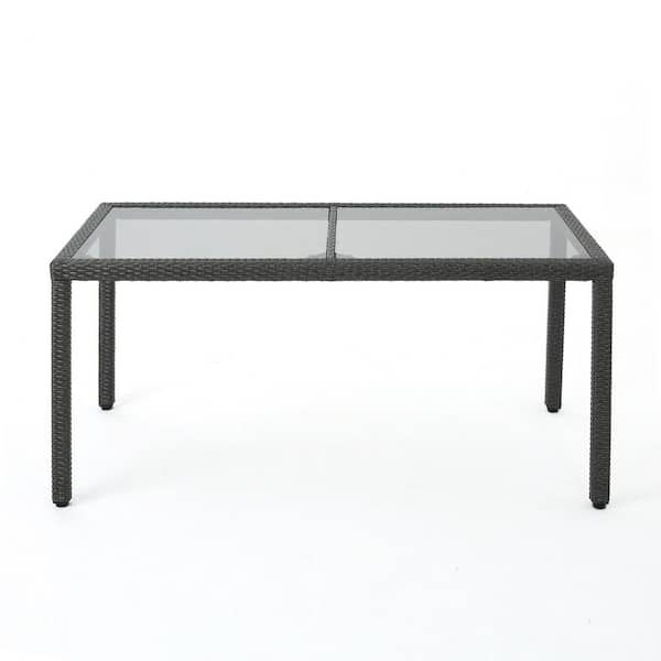 Grey Rattan Wicker Rectangular Outdoor Dining Table with Tempered Glass