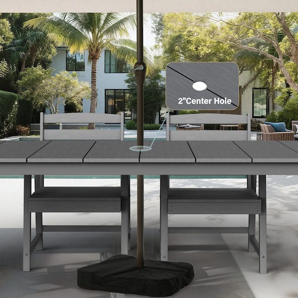 Grey Rectangular HDPE Outdoor Dining Table with Extension