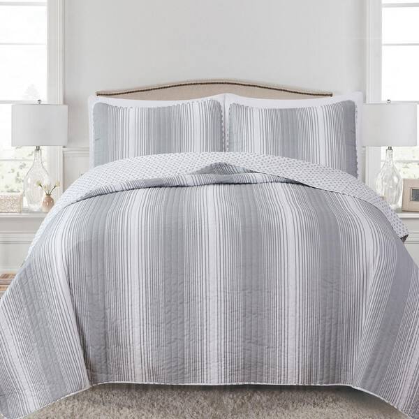Grey Twin Premium Striped 2-Piece Microfiber Quilt Set Bedspread