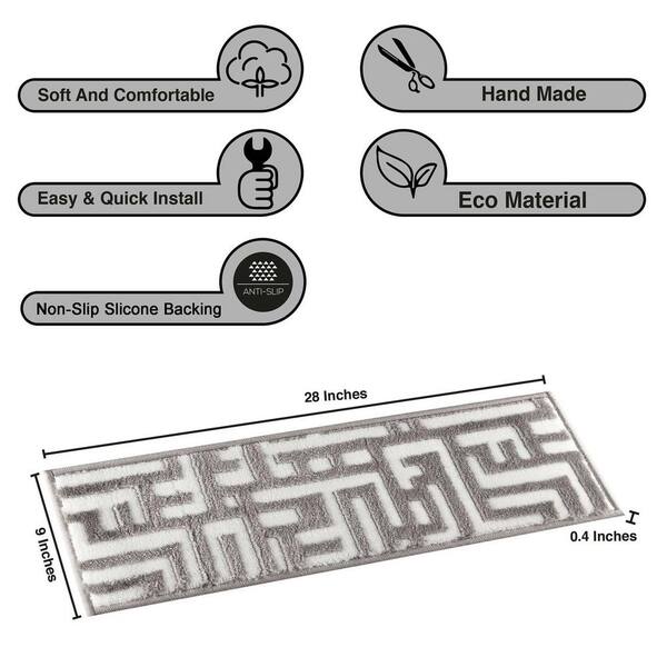 Grey/White 9 in. x 28 in. Non-Slip Stair Tread Cover Polypropylene Latex Backing (Set of 14) Willow Stair Rugs