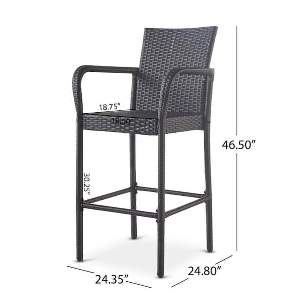 Grey Wicker Outdoor Bar Stool Patio Counter Height Pub Chair All-Weather Rattan Barstool with Arms (2-Pack)