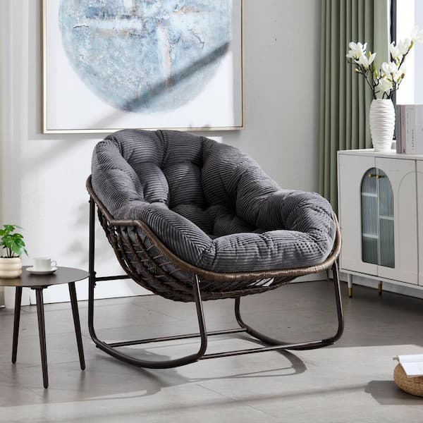 Grey Wicker Outdoor Rocking Chair with Padded Cushion