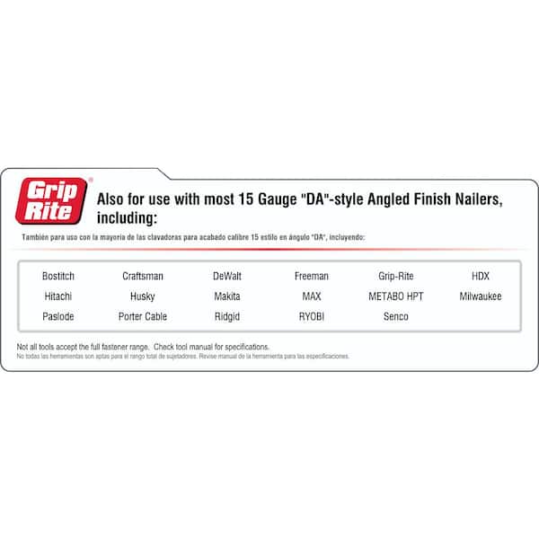 Compatible with most "DA"-style 15-gauge finish nailers