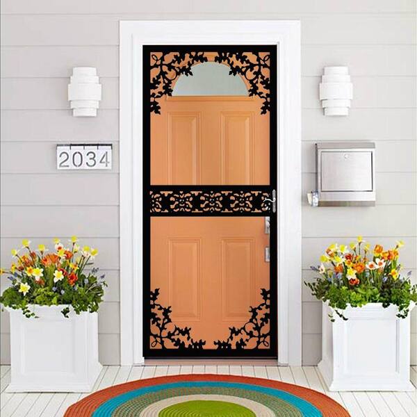 32 in. x 80 in. 164 Series Black Hinge Left Lake Security Door with Self-Storing Glass Feature