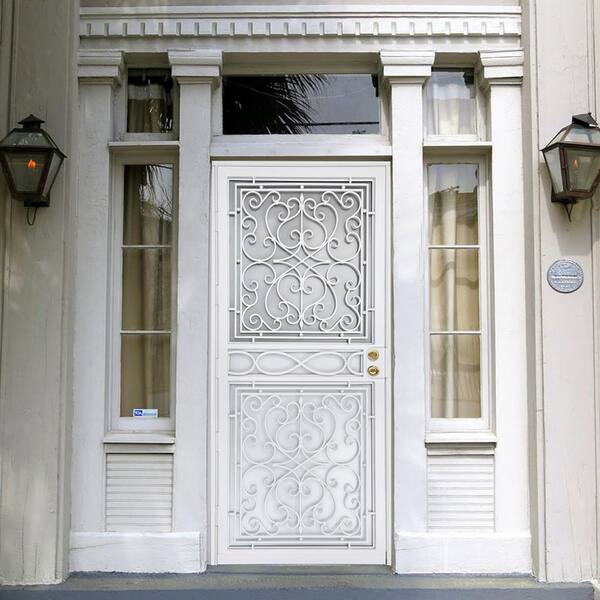 Cambridge 36 in. x 80 in. Universal/Reversible Hinging White Wrought Iron Steel Storm Security Door