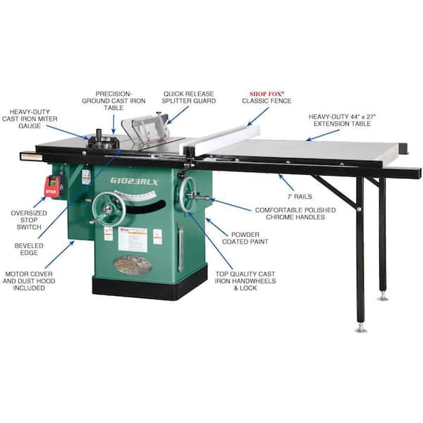 10 in. 3 HP 240V Cabinet Table Saw with 7 ft. Rails