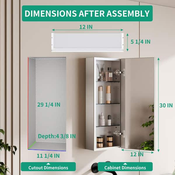 12 in. W x 30 in. H Rectangular Aluminum Recessed/Surface Mount Single Medicine Cabinet with Mirror