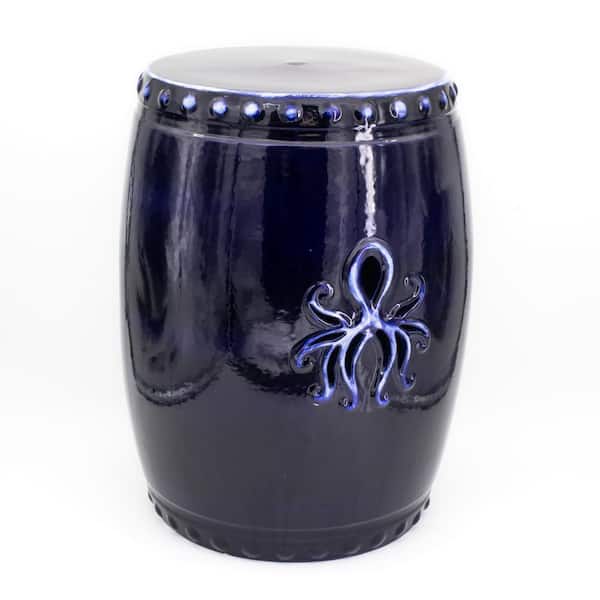 Grotto Deep Blue Kraken Ceramic Barrel Stool