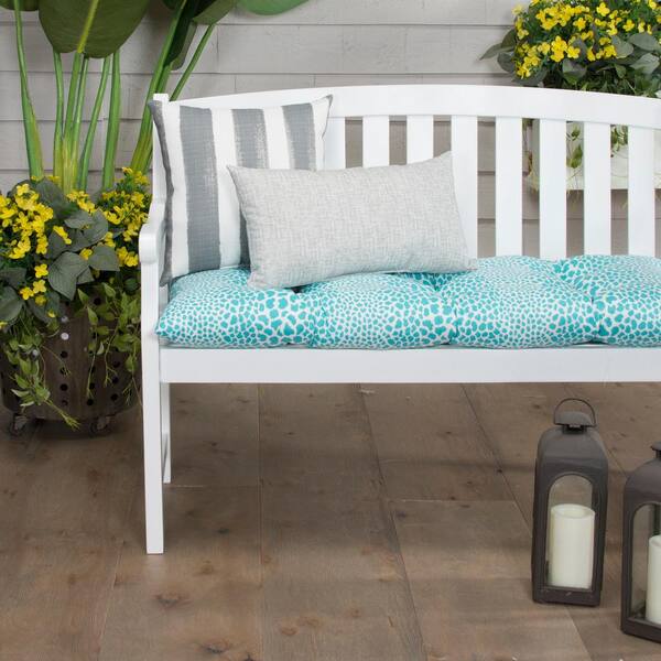Don't Be Catty 44 in. x 18.5 in. x 6 in. Outdoor Tufted Rectangular Loveseat Cushion in Aqua