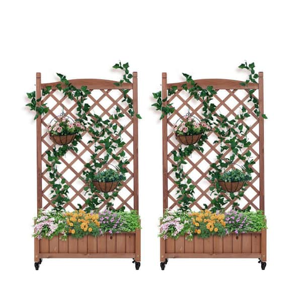 2-Pack Elevated Wood Planter with Trellis, Outdoor Raised Box (L25 in. x W11 in. x H5.9 in.)