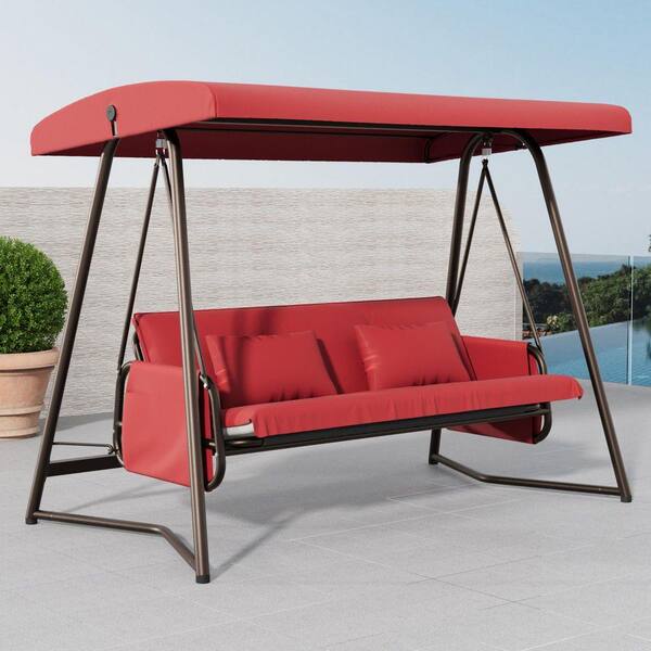 93.3 in. W x 54.3 in. D x 73.2 in. H Red Metal Outdoor Canopy Swing Bed Hammock with Cushion and Adjustable Canopy
