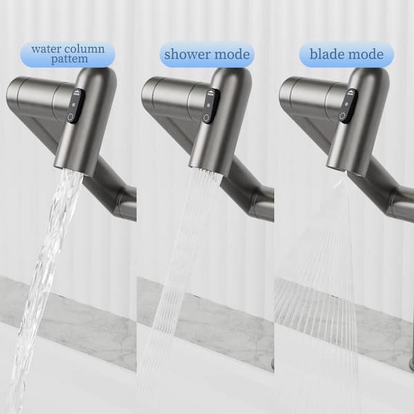 Gunmetal Bathroom Sink Faucet with Spray Function Temp Display Anti-Slip Switch Single Handle Hot and Cold Control