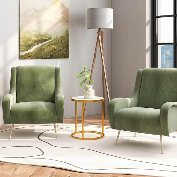 19.5 in. White Plus Gold Marble Top Round Side Table End Table w/Golden Metal Frame