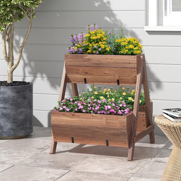 21 in. x 8 in. x 8.5 in. Brown Fir Wood Vertical Raised Garden Bed Planter Stand with 3-Planter Boxes