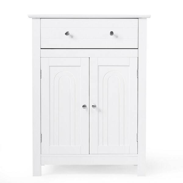 23.5 in. W Bathroom Storage Linen Cabinet Free Standing Large Drawer W/Adjustable Shelf White