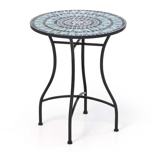 24 in. Patio Bistro Table Metal Structure with Ceramic Tile Tabletop Heavy-Duty