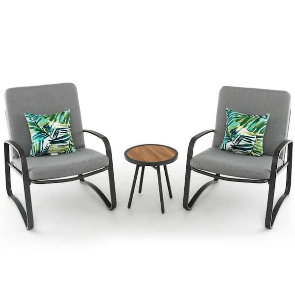 3-Piece Metal Bistro Conversation Set DPC Tabletop Cushioned Chairs Patio