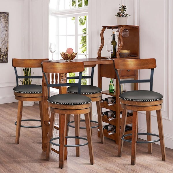 39 in. H BarStool 25.5 in. Low Back Swivel Counter Height Dining Chair with Rubber Wood Legs Brown (Set of 4)
