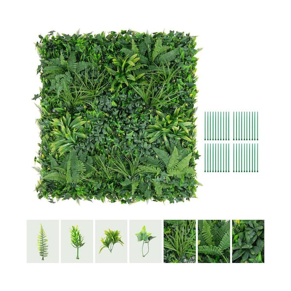 4 Pack 20 in. x 20 in. Green Artificial Grass Hedge Boxwood Panels with 7 Types of Mixed Plants