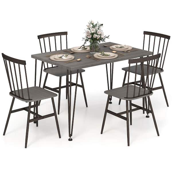 5PCS Dining Table Set for 4 Rectangular Kitchen Table & 4 Chairs w/ Metal Frame Grey Oak
