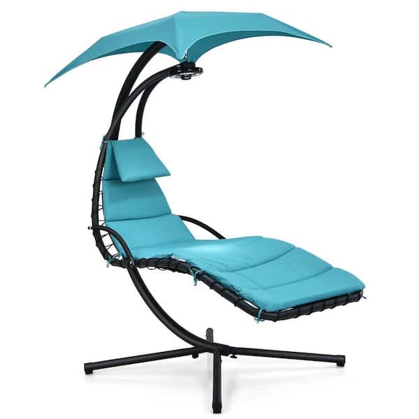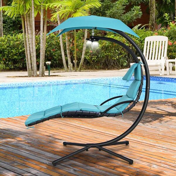 6.7 ft. Hanging Chaise Lounge Curved Steel Patio Hammock Swing Chair with Overhead Light Turquoise