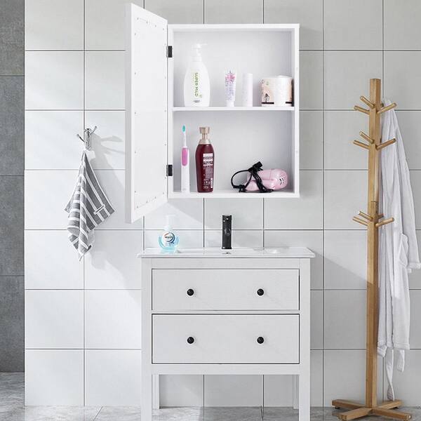 6 in. D x 26 in. H x20 in. W White Wall Mounted Bathroom Kitchen Medicine Storage Cabinet with Mirror and Shelf