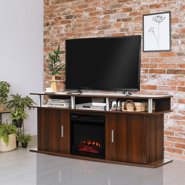 63 in. Fireplace TV Stand with 18 in. 1500-Watt Electric Fireplace up to 70 in. Walnut