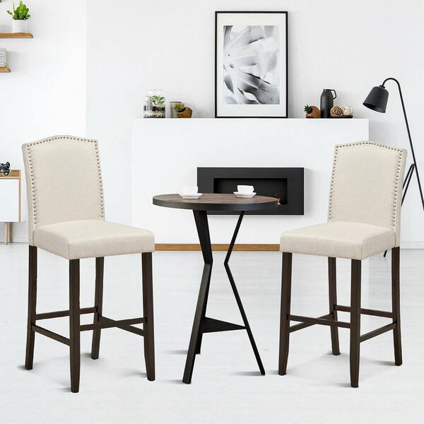 Nailhead Bar Stools 31 in. H High Back with Rubber Wood Legs Beige (Set of 2)