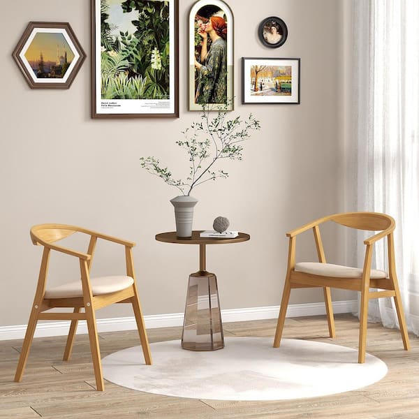 Set of 2 Leisure Bamboo Armchair Accent Chair with Curved Back and Bamboo Structure