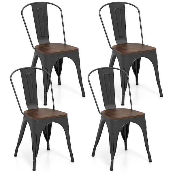 Tolix Style Metal Dining Chairs (Set of 4) w/ Wood Seat and Removable Backrest Black
